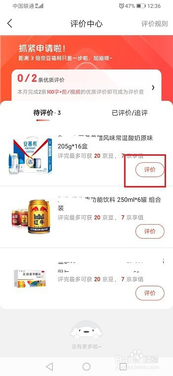 第二步进去京东待评价之后,点击要评价的订单,如下图所示: