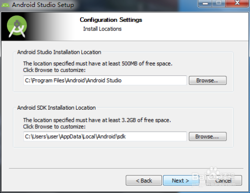 对安装的存放路径的选择,默认是在c盘中,若是c盘空间不敷大,可以选择其它盘路径中。