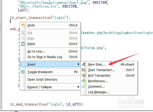 做为例子,首先利用录制的体例,把论坛的代码编写完当作后,要判定的执行前插入查抄点,利用右键体例,弹出的下拉的菜单中进行选择“insert”的选项。