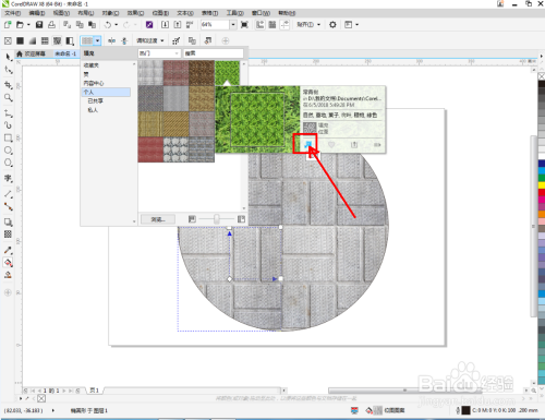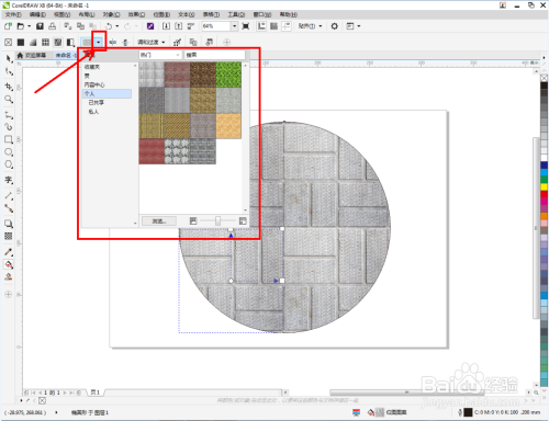 点击【交互式填充东西】-【位图图样填充】,点击【填充遴选器】,弹出填充遴选设置栏;