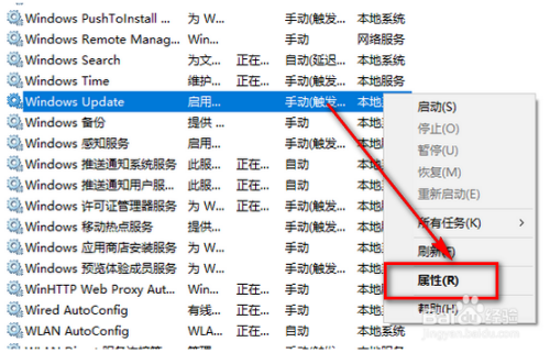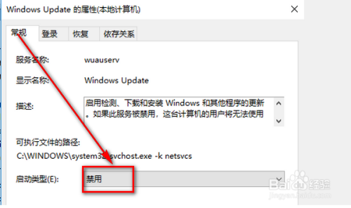 在办事内找到windows Update,右键windows Update,选择属性,将常规下的启动类型调为禁用。