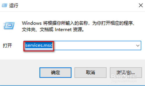 当我们唤出这个运行窗口时,在运行窗口下输入“services.msc”后回车键,进行下一步。