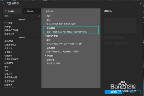 箭头的选中结果完当作后,我们需要使鼠标点击组件时切换滑动呈现选项,这里操纵动态面板。