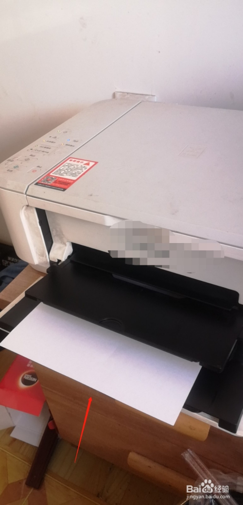 首先我们打开打印机,将一张A4打印纸放在挡板下面。