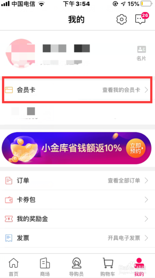 会员卡的页面的右边上方有3个点的标识表记标帜,点击一下