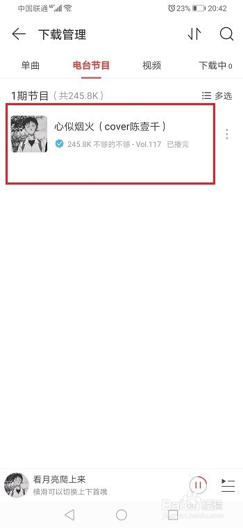 第四步进去电台节目界面,可以看到电台中下载的歌曲,如下图所示: