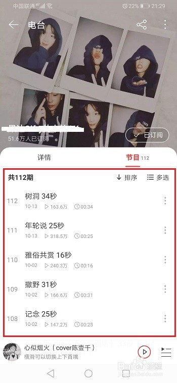 第四步点击订阅的电台进去,可以看到电台里面的歌曲,如下图所示: