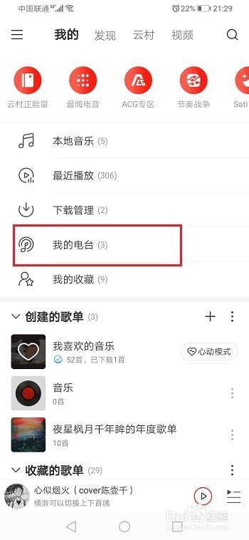 第二步订阅之后,我们来看一下订阅的电台在哪个位置,进去网易云音乐我的界面,点击我的电台,如下图所示: