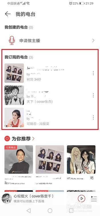 第三步进去我的电台之后,可以看到订阅的电台,如下图所示: