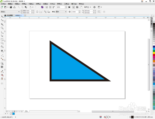 选中直角三角形,鼠标左键点击右边色板中的色块,按照需要设置好直角三角形颜色即可。