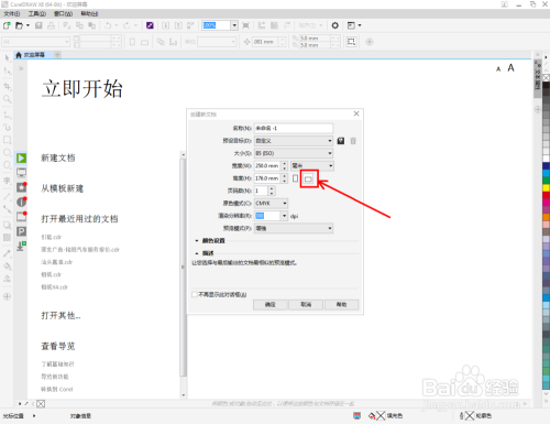 按图示设置好B5尺寸,宽度设置为:176,高度设置为:250,取标的目的设置为:横标的目的/纵标的目的;