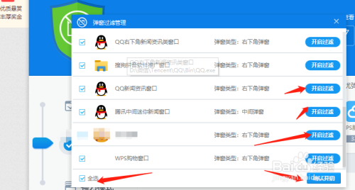 然后我们点击开启过滤,点击全选,选择右下角的“确认开启”。
