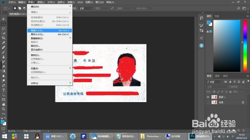 打开PS软件,将身份证照片拖入PS界面打开,如图所示