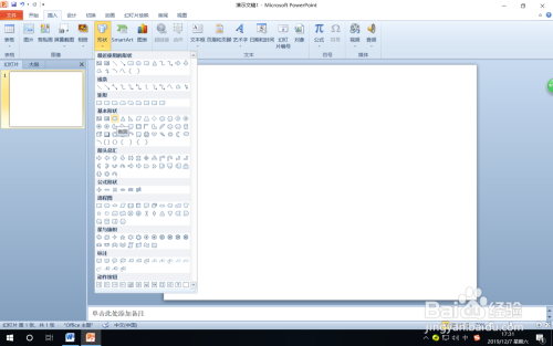 第一步:打开PPT2010,单击“插入”选项卡,在“插图”组中单击“外形”按钮,在打开的外形面板中选择“根基外形”中的椭圆。