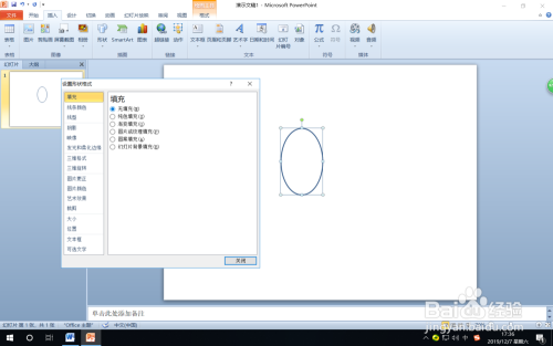 第二步:鼠标在幻灯片窗格按着鼠标左键拖动绘制出一个卵形状。