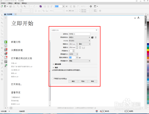 点击【新建文档】,弹出新建文档设置栏;