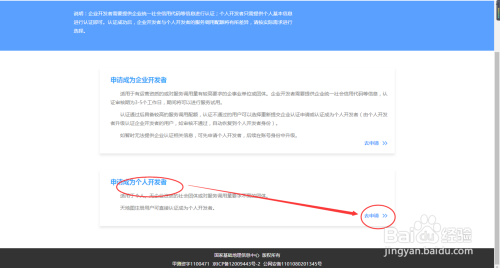 点击“申请当作为小我开辟者”界面中的“去申请”,如下图所示: