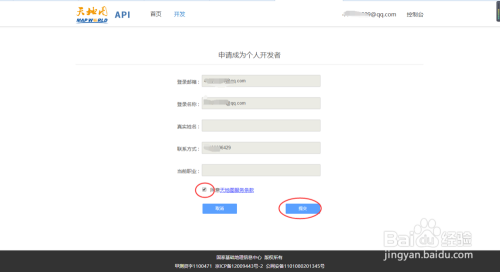 填写相关信息,勾选“赞成六合图办事条条目”,点击提交按钮,如下图所示: