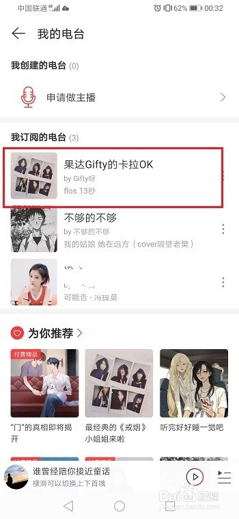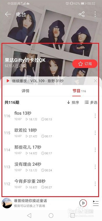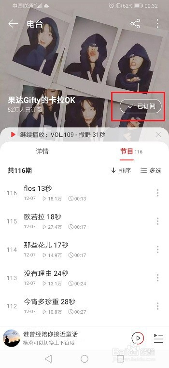 第二步进去之后,可以看到订阅的电台,选摘要打消订阅的电台,如下图所示: