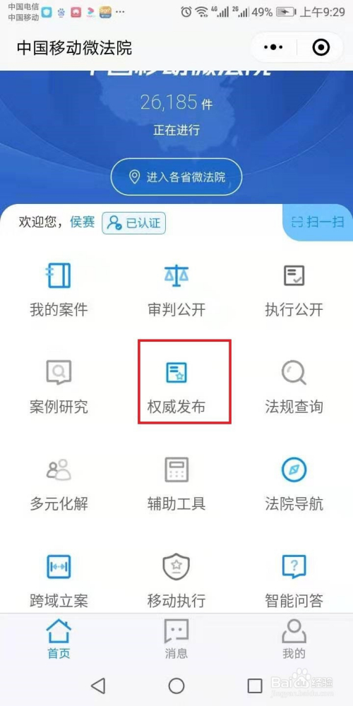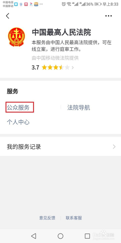 找到政务综合,点击法院