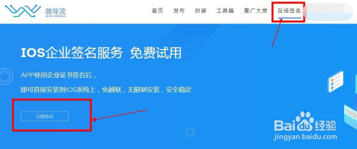 点击导航栏上的“在线签名”,在轮播图上点击“当即签名”