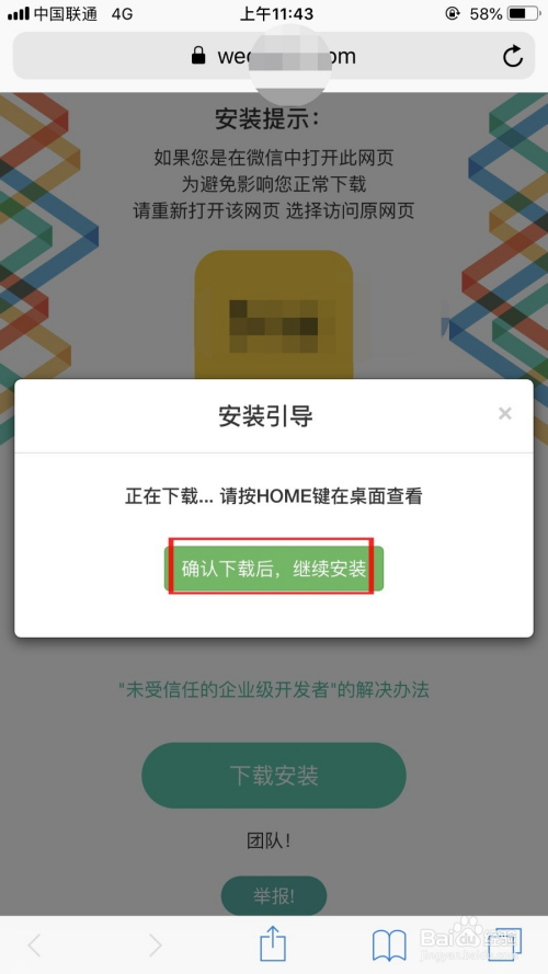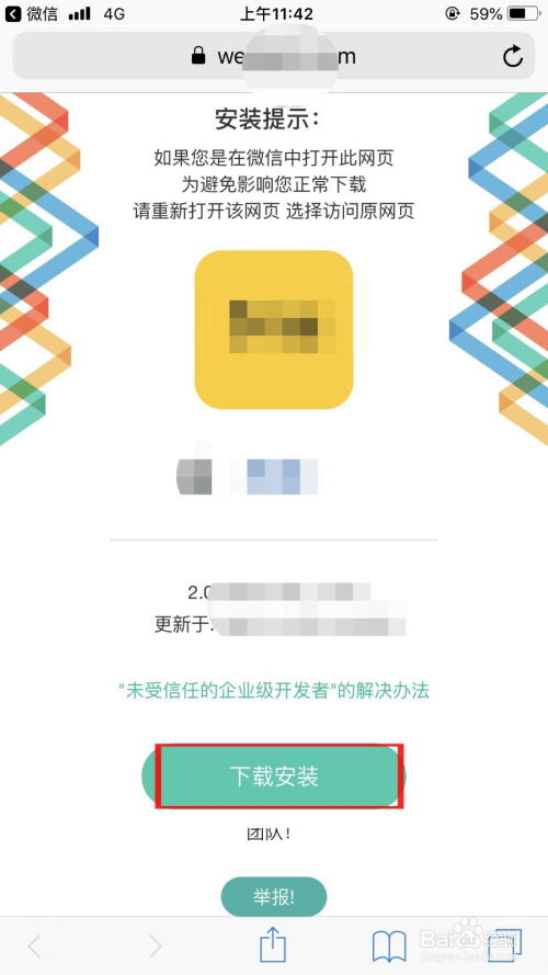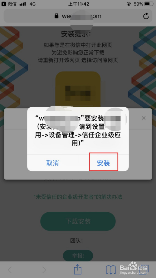 利用苹果手机扫描二维码,在浏览器中打开,点击“下载安装”