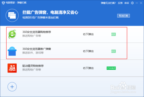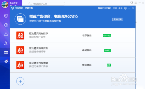 2.4、进入"软件弹窗阻挡"画面。可以看到别阻挡到的购物保举和新闻资讯等。。。