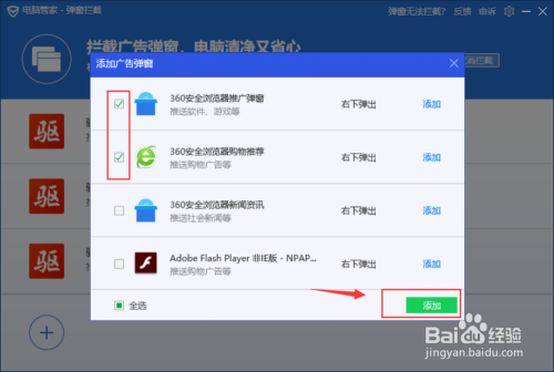 2.6、进入"名单添加",里面会显示出你电脑里所有已安装软件会呈现的弹窗,点击添加即可
