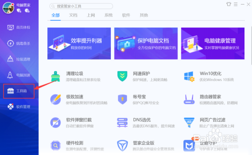 2.2、打开腾讯电脑管家,进入"东西箱"