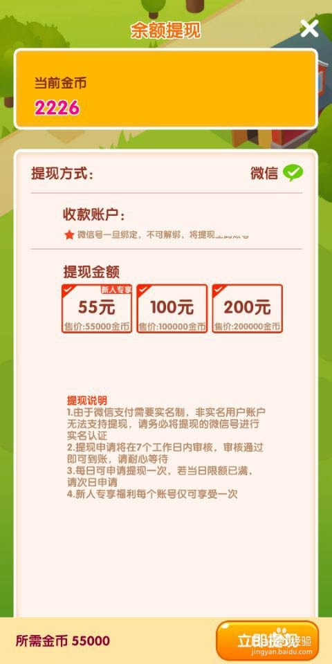 5.最后金币数目达到提现要求就可以提现了