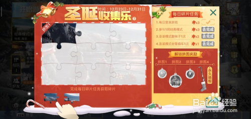 除了登录获得拼图外,我们进行圣诞模式,乘坐圣诞车,摸索圣诞袜都能获得响应的拼图;