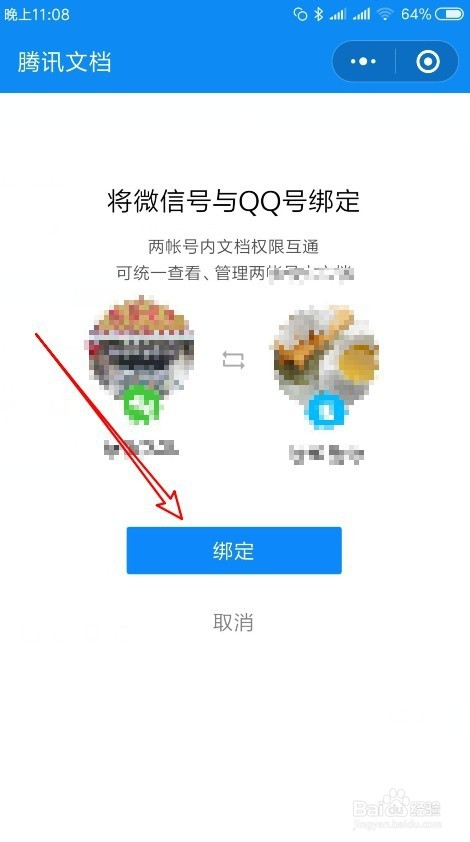 6、手机扫码后点击绑定的按钮。