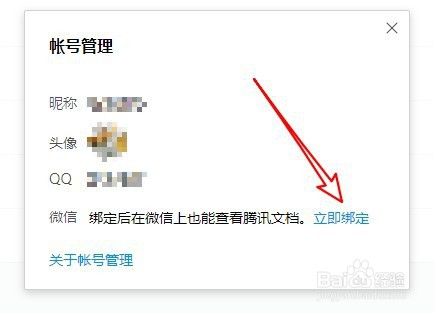 4、接下来再打开的账号办理菜单中点击当即绑定的按钮。