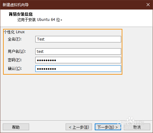 输入【个性化Linux】的相关信息,此例是安装Ubuntu Linux系统,这个信息一般仍是需要在安装操作系统时再次输入。点击【下一步】。