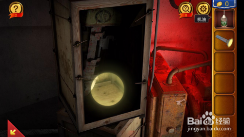 2、操纵手电照射里面的设备,将机油和金币拾取起来。