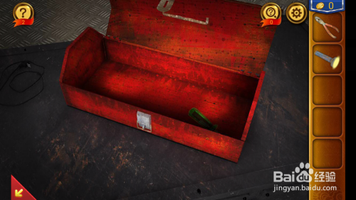 点击中心箱子,将里面的钳子和手电筒拾取起来,然后点击左面的箱子,操纵钳子将箱子上面的铁线剪开。