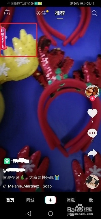 第一步在我们的手机上打开抖音,点击左上方的回首2019,若是没有呈现的话,就多刷几个视频,期待一会儿就呈现了,如下图所示: