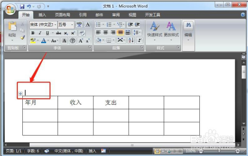 鼠标在表格第一行的第一个单位格内单击,将鼠标置于单位格内文本前。