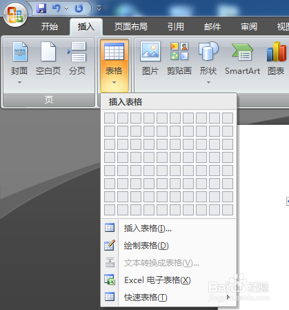 2 运行Word 2007,新建Word文档,单击“插入”-“表格”,插入表格。