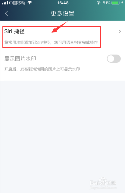 5、打开“Siri捷径”选项进入,这里可以点击右侧的“+”手动添加“语音搜刮”和“离线视频”的捷径体例。
