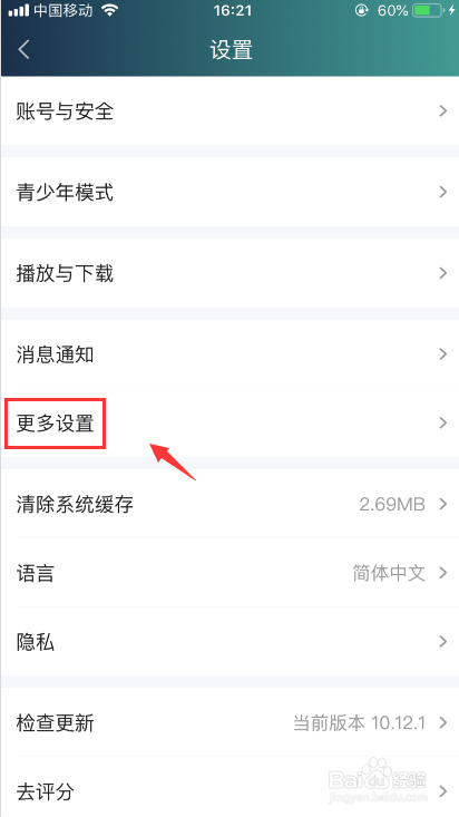 在列表项中找到“更多设置”并进入。