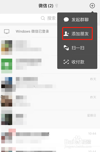 打开微信,点击上方的加号选择倡议群聊