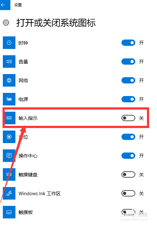 在弹出来的窗口下翻,找到“打开或封闭系统图标”