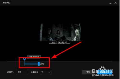 程序默认截取20秒的视频做动画,拖动可以在视频中拔取片段