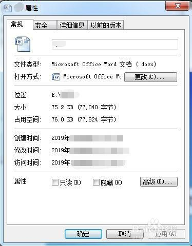 在文件属性界面,可以查看该文档属性的具体信息。