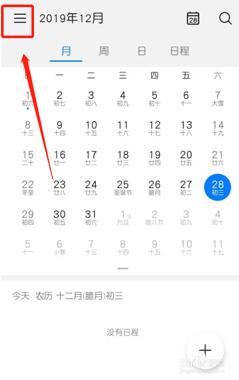 打开华为手机,找到日历小东西,点击肆意一个日期,进入具体日历的页面。