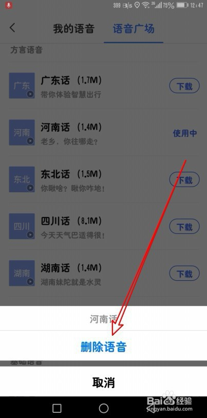 7、在打开的页面中选摘要删除的语音,在弹出菜单中选择删除语音的菜单项即可。