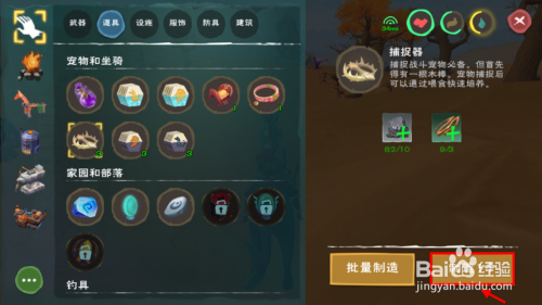 2.建造捕兽器,耗损牛筋x3,石头x10。
