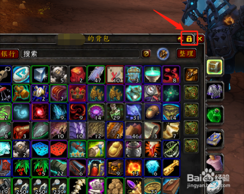 第二步,背包解除锁定今后,将鼠标放在打开的背包界面上。