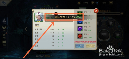 最后,看到显示团队战力和小我战力增添,就暗示已经晋升英雄的品级了。如下图所示